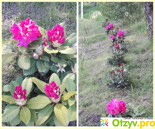 Вдоль дорожек и тротуаров высажены рододендроны и туи.