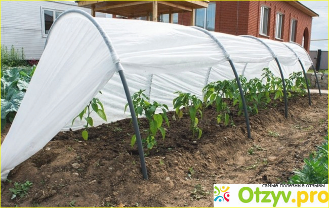 Дуги мини-теплицы вшиваются в укрывной материал "СУФ-42". Он давно применяется в сельском хозяйстве, зарекомендовав себя с наилучшей стороны. Все дело в том, что полотно производится из пропилена со светостабилизирующими добавками. Также оно содержит УФ-стабилизатор значительно повышающий срок службы материала (может использоваться в продолжение нескольких сезонов). Пористая структура полотна способна оградить растения от перепадов температур. Помимо прочего, материал не нарушает воздухообмен и не пропускает влагу.