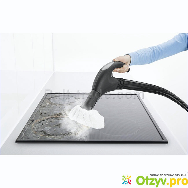 Сначала я пользуюсь пылесосом, затем подключаю пароочиститель, управление находится на панели агрегата, индикатор показывает готовность работать и я приступаю (насадок очень много), я уже попробовала кроме пола чистить окна на балконе, плиту - у меня всегда была проблема с чисткой электрической панели из закаленного стекла, а тут несколько минут и все готово.