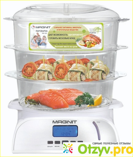 Но со временем я поняла, что мне надоели все те блюда, которые я готовлю из дня в день. По многим советам и рекомендациям я приобрела пароварку Magnit RMC-3130.