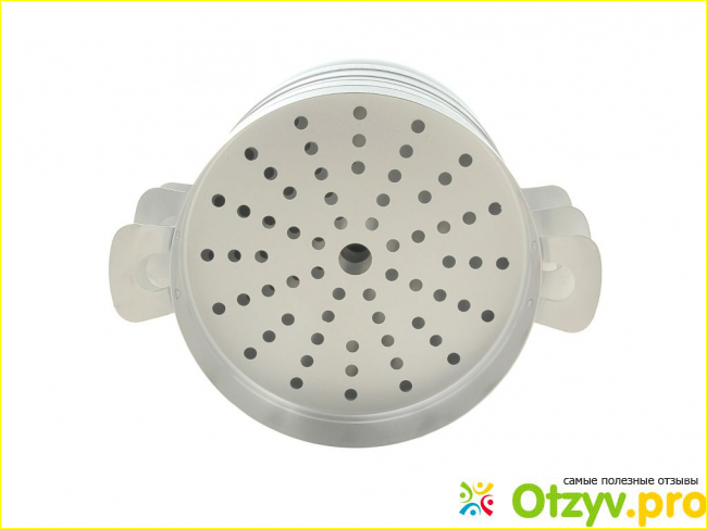 Конструкция довольно простая, как я уже сообщил нижняя часть представляет собой кастрюлю-бойлер приличного объема, а также 4 уровня, а также крышку. Конструкция пароварки-мантоварки содержит несколько отдельных сеток. В крышке имеется отверстие для выпуска воздуха. Мантоварка-пароварка продается в упаковке, внутри также есть и документация в виде небольшой инструкции по применению.