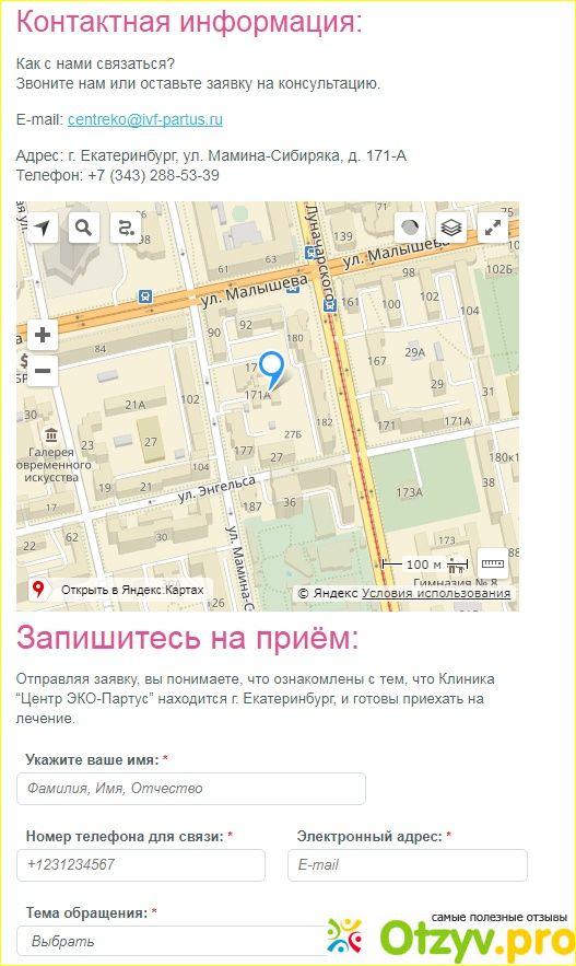 И, кроме того, размещена форма записи на прием. На мой взгляд, это очень удобно. Попав на эту страницу сайта не потребуется возвращаться на главную страницу только для того, чтобы записаться на прием.