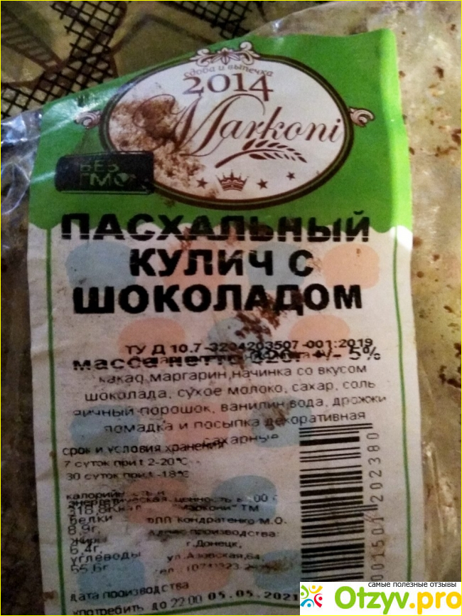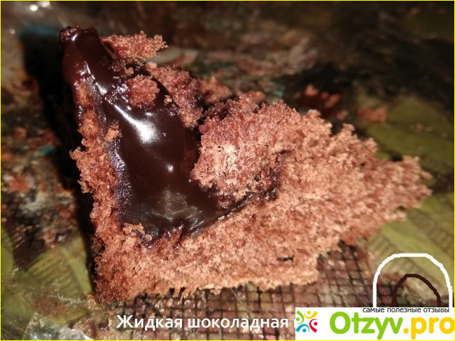 Его приобрела моя мама, коллега привезла. На вид обычный небольшой кулич, в пакетике. Но тёмно-коричневый. Если разрезать, тесто немного суховатое. Это нормально для шоколадного изделия. Не сильно сладкое, очень вкусное. Но особо меня впечатлила жидкая шоколадная прослойка. Она пересекает всю пасочку буквой "П" с закруглёнными углами, практически дублирует её профиль. А в центре на дне очень много жидкого шоколада.