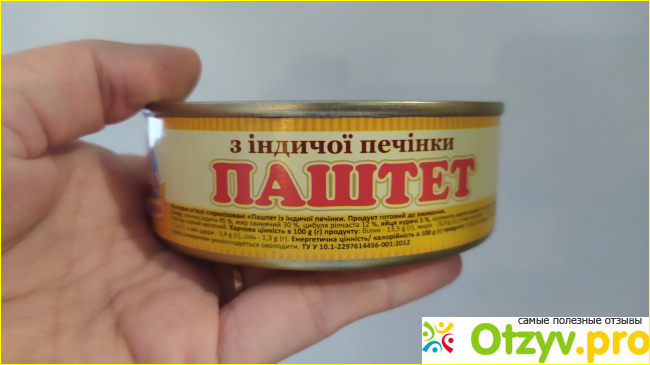 Хочу вам посоветовать вкусный и качественный паштет с хорошим составом, это паштет из печени индейки от торговой марки Сто пудов "Стопудовый". Такой паштет в последнее время подорожал, стоит 5грн, но качество отличное. Паштет в простой жестяной банке, без колечка для открывания.