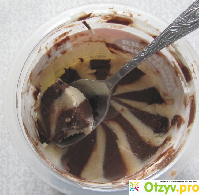 Сразу бросается в глаза явное преобладание белой молочной массы над шоколадной. Но, использовав часть пасты на бутерброд этот дисбаланс потихоньку исчез - шоколадной пасты стало заметно больше, примерно поровну с молочной.
