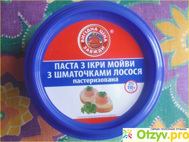 поэтому увидев на прилавке Пасту из икры мойвы с кусочками лосося "Выгодная цена всегда", решила прикупить для пробы.
