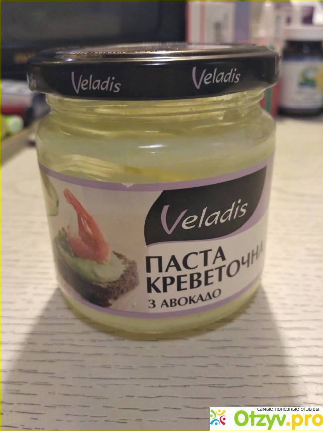 Периодически покупаю бутербродные намазки, но стандартная икра мойвы уже малость надоела. Случайно набрела на Пасту креветочную с авокадо. Купила, т.