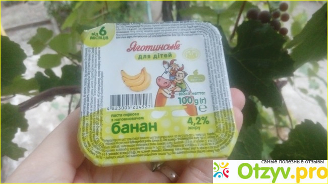 В составе натуральный творог с коровьего молока и специальная закваска. Наполнитель полностью натуральный, это пюре и сок банана, без химических ароматизаторов и консервантов.