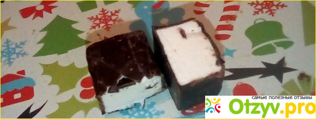 Внутри нежное суфле. Глазурь довольно тонкая. Ну а вкус... Сладко-да и все. Никакого необычного вкуса, довольно приторная пастила, я такую не люблю. В общем, не впечатлила вообще. Попробовала и эту пастилу брать не буду.