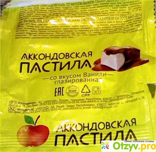 Пробовала немало продукции этой фабрики. Она находится в городе Чебоксары. И вот теперь угостили меня пастилой под названием "Аккондовская" глазированную со вкусом ванили.