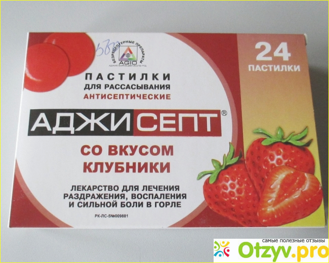 В третьих, приятный вкус. Пастилки в виде круглых таблеток, похожие на леденцы. Аджисепт со вкусом клубники красного цвета.
