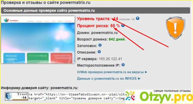 Этому ресурсу люди не доверяют. Процент риска очень высок - 65%. Почему так? Все эти выводы делаются на основании отзывов отдельных потребителей. А они считают, что компания занимается спамом и другими неблаговидными делами.