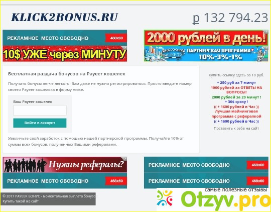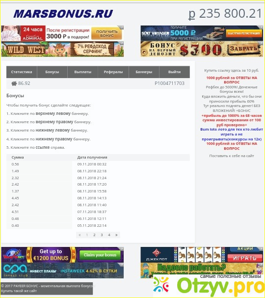 Однажды наткнулась на сайт в котором обещали раздавать халявные бонусы на кошелек Payeer, от нечего делать и в ожидании "бесплатного сыра" решила попробовать. Оказалось таких сайтов много и бонусы они якобы раздают за клики по баннерам. Раз в двадцать минут за пять кликов можно получить случайный бонус (от нескольких копеек до 6 рублей, хотя в рекламе обещали больше).