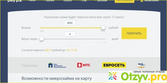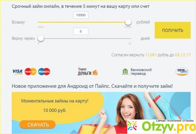 Пайпс ничем не отличается от сотни других подобных сайтов которые работают онлайн. Предоставляете достоверные данные, их проверяет отдел безопасности сайт, они рассматривают всю вашу информацию по другим кредитам, если очевидный должник скорее всего будет отказано, если первый раз берете кредиты онлайн перезвонят проверят дополнительную информацию и через несколько минут пришлют деньги на банковскую карточку. Значительный плюс, деньги можно прислать только на карту под вашими ФИО, другой человек просто так не сможет взять на вас кредит как обычно бывает пугают в интернете. Данных заполнять не много, обычно это самые основные вопросы, номера паспорта, кода, прописки, телефоны нескольких друзей которым будут звонить в самых крайних случаях длительной задолженности.