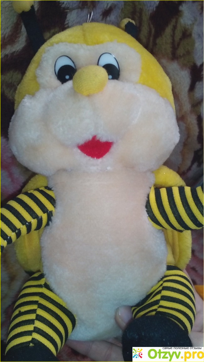 Мы покупали ей когда ей исполнилось шесть месяцев. Ей пчёлка Майя сразу понравилась, по этому она с ней не расстается до сих пор по тому что очень нравится. У пчелки большие глазки, ярко жёлтого цвета сама пчёлка с чёрными полосочками на спинке. Очень классная , интересная, увлекательная, красивая . За счёт своей окраски детям нравиться. По этому рекомендую всем кто увидит эту игрушку на прилавках ваших магазинов. Хотя сейчас на прилавках очень много разных вариаций этих игрушек, но нам понравилась именно эта пчёлка, так как у неё низкая цена, хорошее качество, нитки не торчат. Советую всем кто хочет порадовать своего ребеночка хорошим товаром по низкой цене. Я думаю что всем детям нравятся такие интересные игрушки, по этому рекомендую, ваш ребёнок останется доволен. Всем большое спасибо кто будет читать мой отзыв.