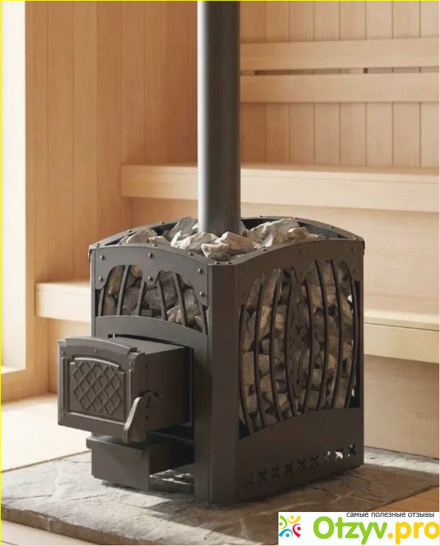 В живую видно, что металл тяжелый, добротный, толщина чувствуется. Это не пустая коробка, а цельнолитая топка без болтовых соединений. Нагревается она не рывками, а плавно, и остывает тоже долго. После банного вечера тепло держится ощутимо дольше, чем у моей прошлой стальной печи. Оребрение на стенках оказалось не просто «для красоты». Ребра создают дополнительную площадь нагрева, камни набирают температуру быстрее, и парилка выходит на режим без долгих ожиданий. Нижняя часть сетки работает как конвектор, и это чувствуется: воздух поднимается равномерно, без «холодных пятен». Камни укладывать удобно, расстояние между сеткой и топкой увеличенное, рука свободно проходит. Ограничители внизу реально помогают, камни не заваливаются, и не надо докупать лишний вес, чтобы набить всю сетку. Самое приятное это пар. Он мягкий, плотный, без жесткого излучения от раскаленного чугуна. Обкладка камнями вокруг топки делает свое дело: можно сидеть почти рядом с печью, и тепло не обжигает кожей. Когда поддаешь воду, не появляется «игольчатого» пара, который бьет в лицо. Облако поднимается плавно, дышится легко. Если любишь влажную русскую баню, то эта модель как раз для такой атмосферы