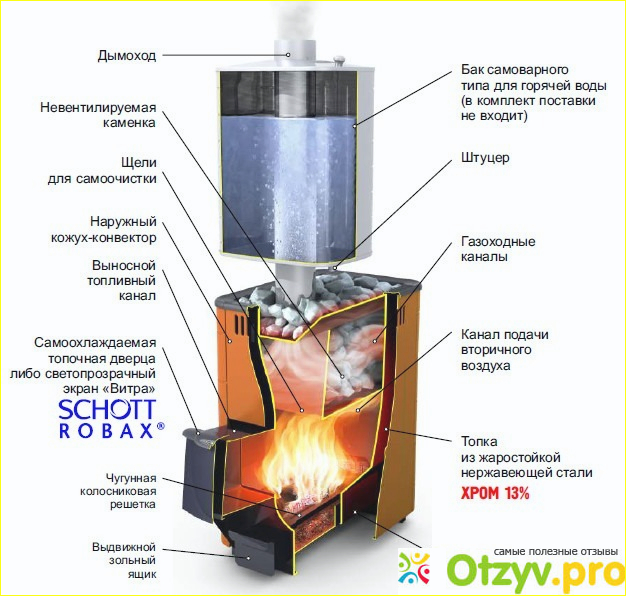 Данная столь перспективная печка относится к печам-каменкам. Сажу приходится чистить регулярно из-за сравнительно быстрой засоряемости.