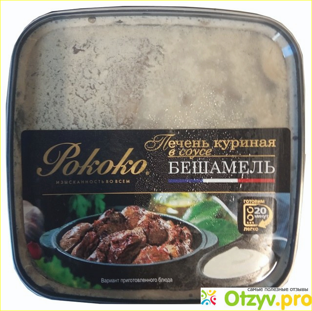 Купила тут у нас в Семье классную куриную печень в соусе бешамель от бренда Рококо. Во всех магазинах этой сети в Екатеринбурге думаю можно её найти. Печень упакована по полкило в пластиковую коробочку с крышкой, в составе лишь печень и соус.