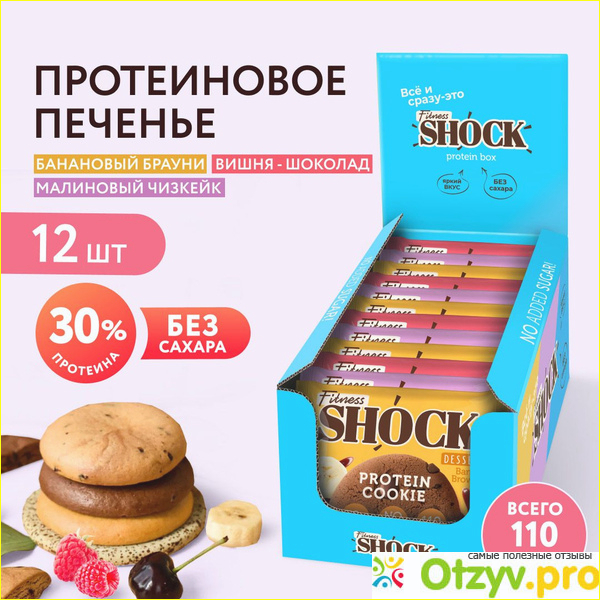 Ассорти из протеиновых печеньев от Fitness Shock купила впервые. Увидела их на маркетплейсе и меня сразу привлекла красивая яркая упаковка с разноцветными печеньями и такими аппетитными вкусами - банановый брауни, вишня- шоколад, малиновый чизкейк - разве эти названия вкусняшек не вызывают желания попробовать этот десерт? В общем, теперь печенья у меня и я с удовольствием ими перекусываю каждый день, особенно люблю есть в прикуску с чаем без сахара.