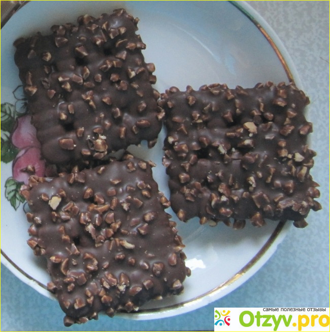 Калорийность этого печенья достаточно высокая - 100 грамм содержит 489 ккал., оно и понятно, печенье достаточно жирное (жиры 26,9 г.) с шоколадной глазурью и орехами.