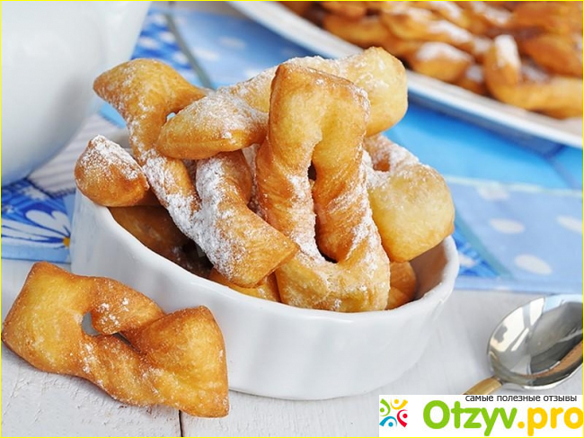 Сама суть рецепта - раскатать тесто, разделить его на части и жарить на сковороде в горячем растительном масле. Закручивают тесто разными формами. Можно приготовить блюдо и в виде красивых спиралей. Для этого тесто должно быть жидкой консистенции и в нём должно присутствовать молоко. Когда жидкое тесто попадает в кипящее масло, оно само закручивается причудливыми формами.