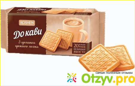 Отлично для этих целей подходит сахарное печенье с ароматом топленого молока "К кофе" от "Рошен". Цена бюджетная и вкус неплохой. Своим внешним видом оно напоминает обычное квадратное бисквитное или сахарное печенье. Печенюшки обычно светлые сверху и румяные снизу. Выпускается продукт в глянцевой пластиковой упаковке с изображением печенья и чашки с кофе на светло-коричневом фоне. Упаковка крепко запаяна на всех швах. Вес - 185 г, к сожалению, не 200 г, как раньше было у производителей. В составе: мука пшеничная, сахар, соевый лецитин, соль, разрыхлители, маргарин (с пальмовым маслом), ароматизатор, регулятор кислотности. Сложно уже вспомнить тот состав, что был несколько лет назад, но вкус сейчас все же стал не таким. Да, печенье на вкус очень даже неплохое, тает во рту. Однако ранее оно было вкуснее. И еще у него есть один недостаток - может сильно ломаться, крошиться, если свежее. Кстати, срок годности у него - аж 2 года и мне кажется, что это многовато для подобного продукта. Но, что поделаешь, производитель старается удешевить продукцию, экспериментируя с составом, чтобы продлить срок хранения.