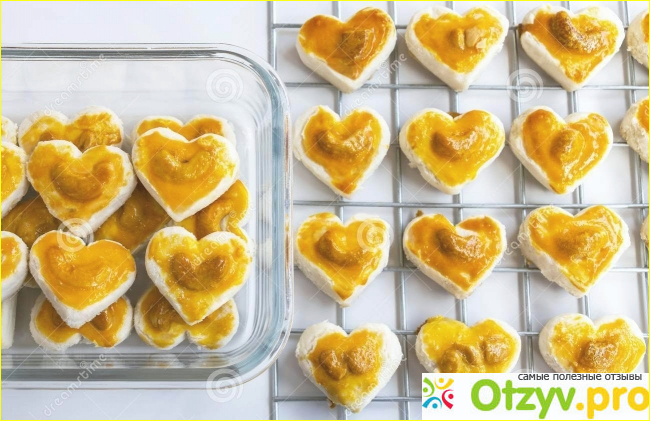 После нужно соединить сердечко, которое было намазано желтком и сердечко, которое смазали мармеладом, так, чтобы мармелад был внутри.