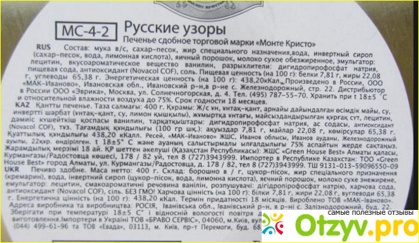 В составе я нашла следующие ингредиенты - муку, воду, сироп - причем натуральный из сахара, воды и лимонной кислоты, ничего против не имею, порошок яичный, а не яйцо - не очень понравилось это, уже не натурально как бы. Молоко сухое присутствует в составе, эмульгатор, куда же без него, жир - кондитерский, не сомневаюсь в этом, ванилин, разрыхлитель, сода и соль, и на завершение бикарбонат аммония - мало приятного и антиоксидант. Так вот из всего этого я понимаю, что некоторых составляющих в моем домашнем печеньи нет, а потому оно и не такое вредное, как это. Если есть такой печенье каждое утро с чайком, то скорее всего через время появится какая-то проблема в жкт, так что старайтесь магазинные продукты, особенно печенье, не часто смаковать, периодически!