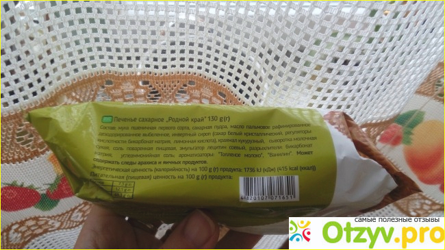 На пачке указан состав печенья, данные производителя, сверху на видном месте указана дата его производства.