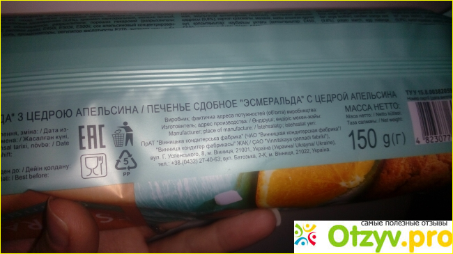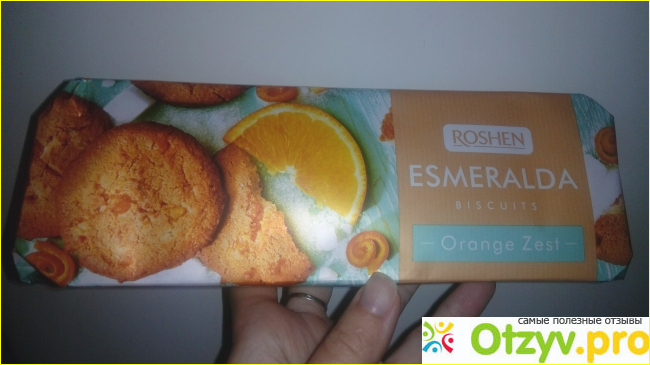 Для меня самое вкусное печенье у торговой марки Roshen это "Esmeralda". Такие печенюшки есть в продаже с кусочками шоколада и с цедрой апельсина. Сегодня я купила к чаю с цедрой апельсина.