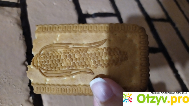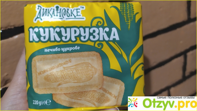 Дизайн упаковки и самого печенья соответствует названию, и на пачке и на печенье изображение кукурузы, оформлена упаковка в желто-зеленых цветах.