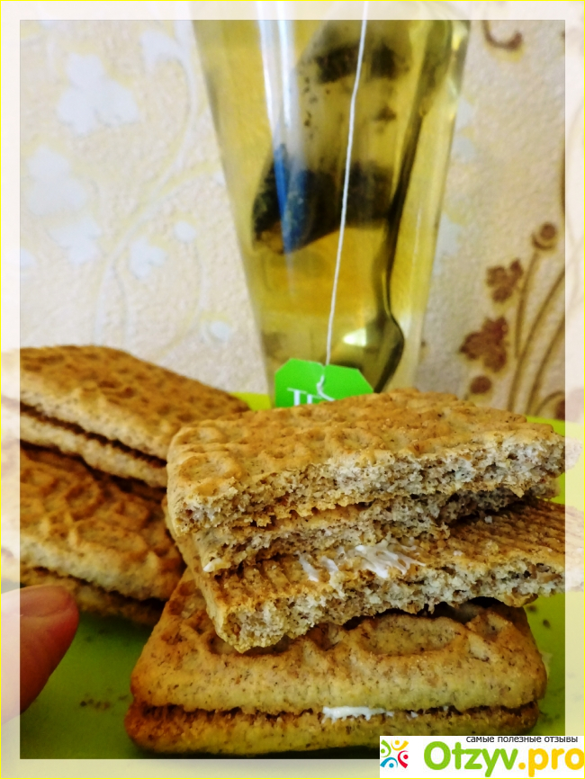 В продукте отчетливо ощущается большое количество отрубей, но употреблять печенье в пищу это не мешает, оно в меру мягкое и немного хрустящее, хорошо утоляет голод. Состав, к сожалению, не самый безопасный. Продукт содержит Е - ки, пальмовый жир и ингредиенты, которые способны вызвать аллергическую реакцию организма.