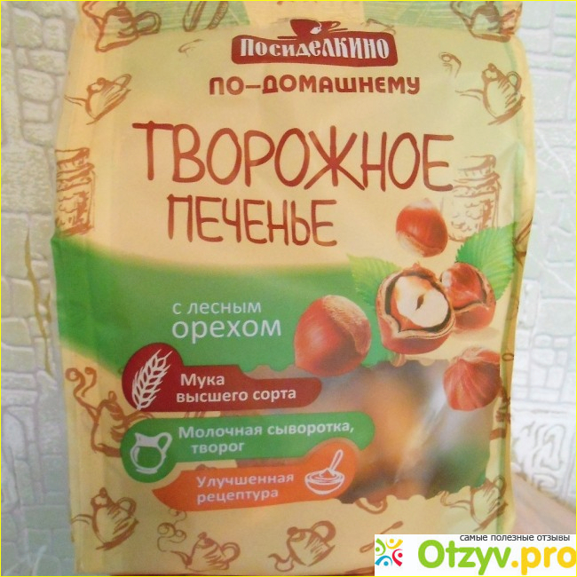 Бренд Посиделкино мне не был известен, но я все равно купила на пробу Печенье сдобное Творожное с лесным орехом. Когда я была маленькой, моя мама часто пекла творожные печенья, правда, без добавления орешков. Я очень любила те печенья и даже сама несколько раз пробовала их испечь, но у мамы все равно получалось вкуснее.