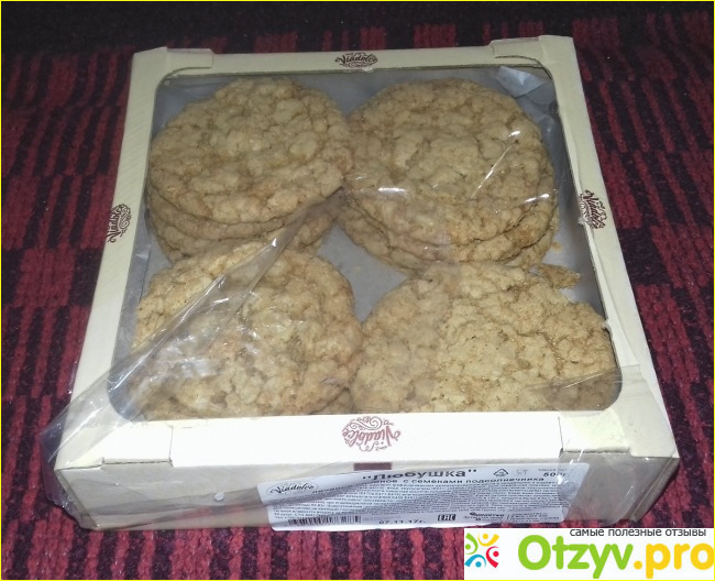 Кстати, на зубах больше ощущается какой-то овес, чем семечки. Оно жестковатое, суховатое, жевать приходится долго, так как есть непреодолимое желание прожевать как следует и ощутить его вкус, а вкус непонятный и мне не очень понравился. Как будто сладкий овес жуешь. Вот такое странное печенье, мне лично не понравилось.