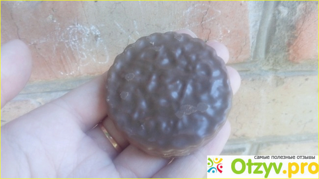 Сверху печенье покрыто шоколадной глазурью, вкус которой мне очень нравится. Глазурь не пластилиновая, имеет естественный аромат и вкус какао, не осыпается.
