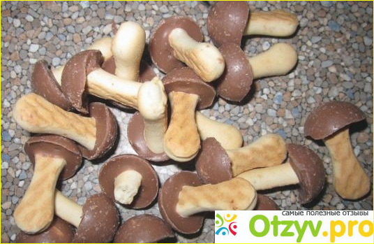 Такое печенье я покупала на развес, так хоть дешевле получается, да и шляпки у грибков с темным и белым шоколадом.