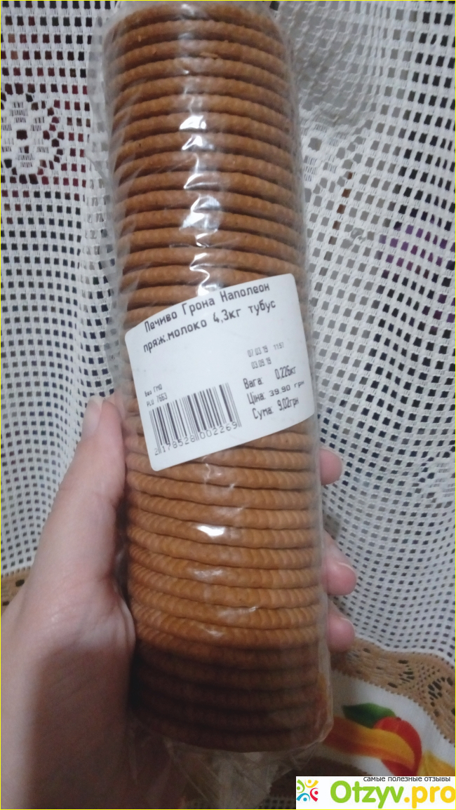 У меня дома постоянно присутствуют какие нибудь печенюшки к чаю, и в последнее время это первый от торговой марки Грона "Наполеон". Это печенье простое, с виду ничем не примечательное, но очень вкусное и по вкусу не уступает более дорогим видам печенья.