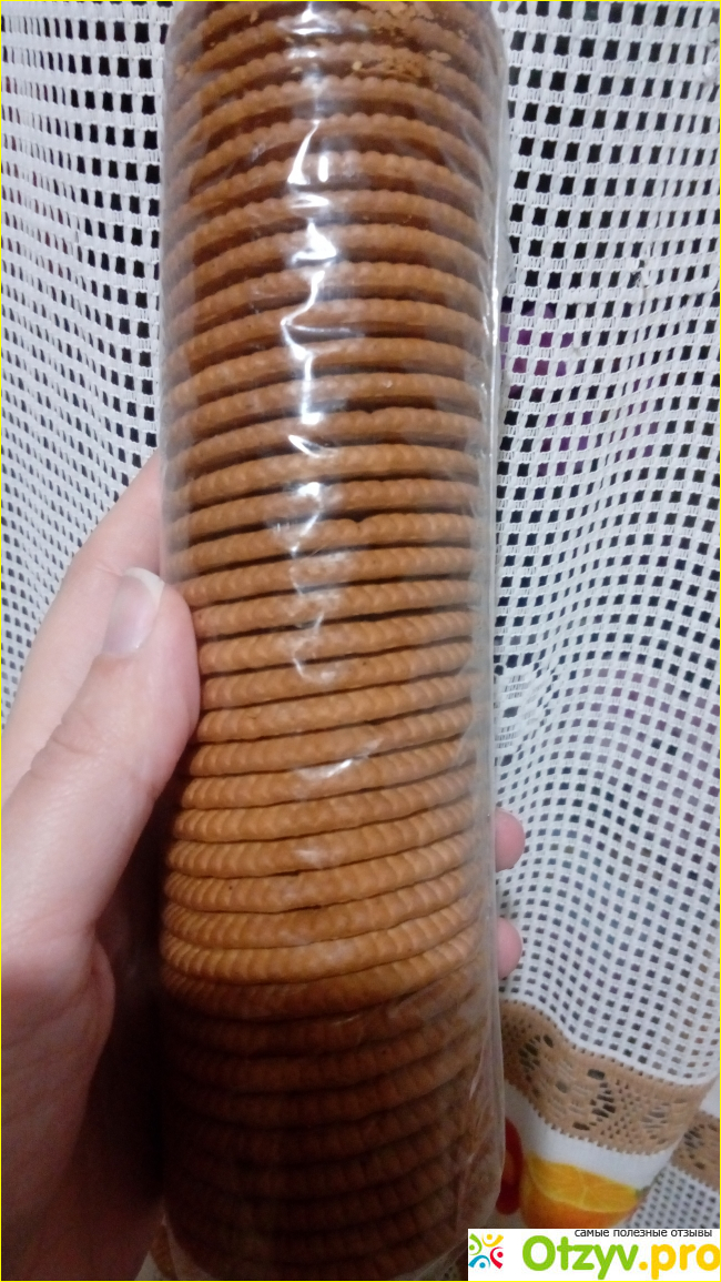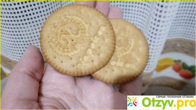 Выглядит печенье просто, круглой формы с выдавленной надписью названия печенья.