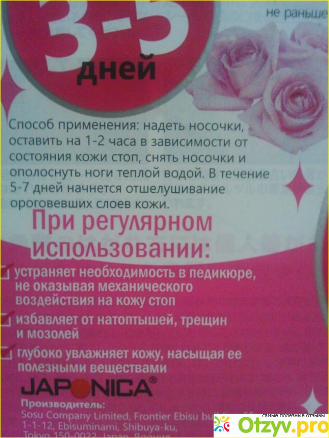 Кожа облезает в течении недели, все это время приходится ходить с облезающими шершавыми ступнями, очень не привлекательно выглядевшими.