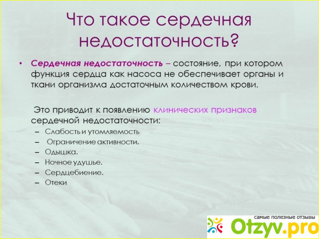 Хроническая сердечная недостаточность, сопровождающаяся одышкой, отеками мягких тканей, физической усталостью и быстрой утомляемостью,
