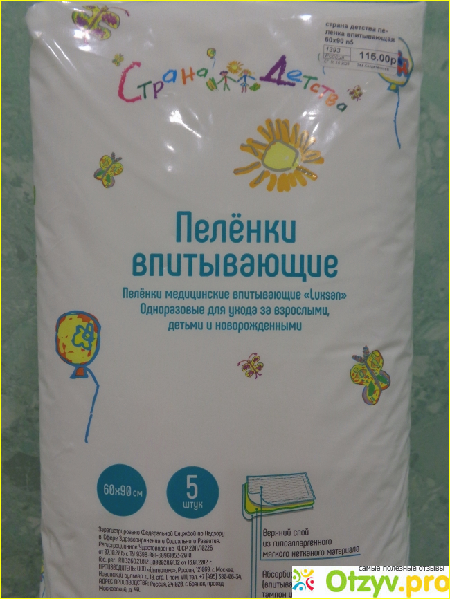 Пелёнки впитывающие "Страна детства" выпускаются в столь привлекательной упаковке. Пять штук может быть вполне достаточно для основных нужд.