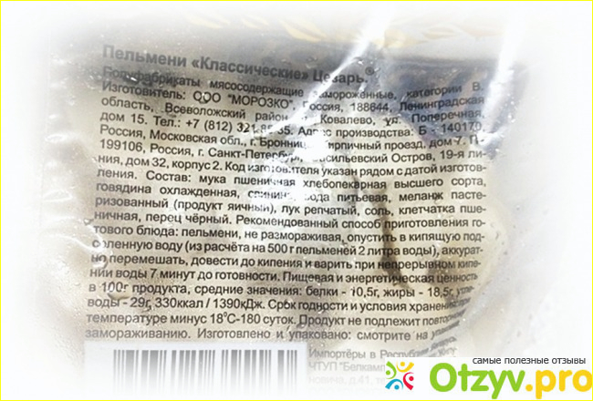 Состав как написано на упаковке весь натуральный и фарш там говядина и свинина и как мне показалось, что это очень вкусно и мы хотим купить на пробу и другие пельмени.