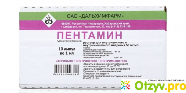 Пентамин является фармакологическим средством, которое относится к группе ганглиоблокаторов. Препарат оказывает достаточно выраженное действие на периферическую нервную систему. Основным действующим веществом препарата является бромистый азаметоний.