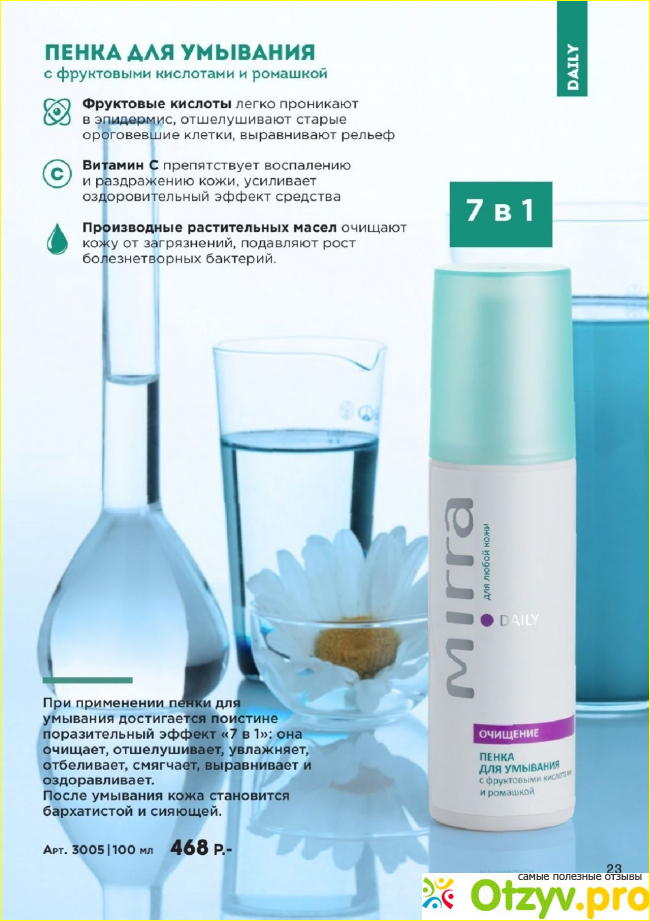 Зато пенка эффективно и деликатно очищает кожу от загрязнений, успокаивает кожный покров от воспалений и покраснений, заживляет места с мелкими царапинами и препятствует развитию патогенной микрофлоры. В итоге кожа становится чистая, нет черных точек, поры сужаются, очень здоровый и красивый оттенок лица, меньше сыпи. Получается идеальное увлажнение, мелкие морщины уходят и идет их замедление, влага остается внутри клеток.