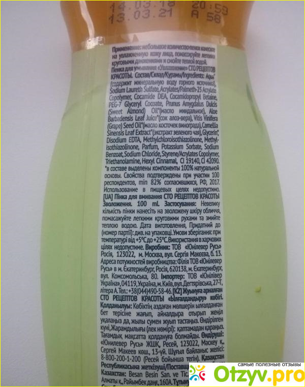 Нежная, мне подошла. Пенка для умывания "Сто рецептов красоты" с минеральной водой