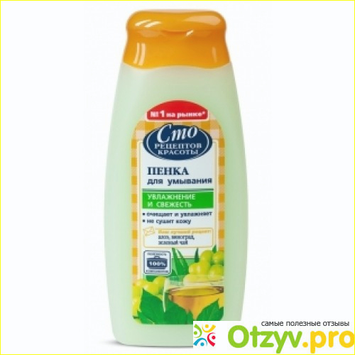 В магазинах выбор бюджетных умывалок оказался немаленьким, мне чем-то приглянулся пузырёк пенки Сто рецептов красоты "Увлажнение и свежесть". Торговая марка вроде неплохая, ранее пользовалась несколькими продуктами их производства и осталась ими полностью довольна.