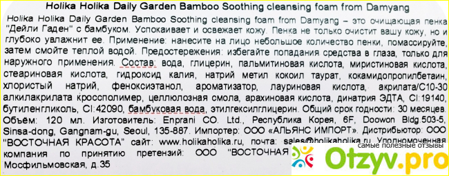 Пенка Holika Holika Daily Garden Damyang Bamboo Soothing Cleansing Foam |