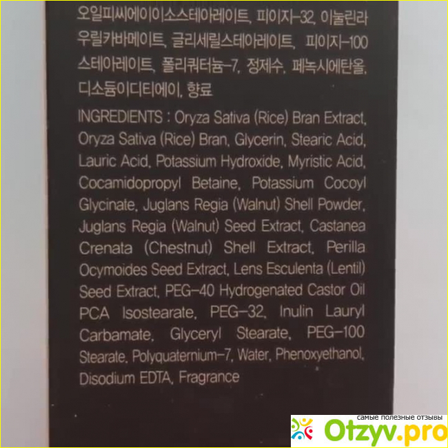Пенка содержит в составе незначительное количество отшелушивающих частичек из грецкого ореха. Их так мало, что скрабом трудно назвать. Для меня это просто пенка. Она прекрасно пениться. За время применения средства я не нашла в нем никаких недостатков и могу смело поставить ей пятерку.
