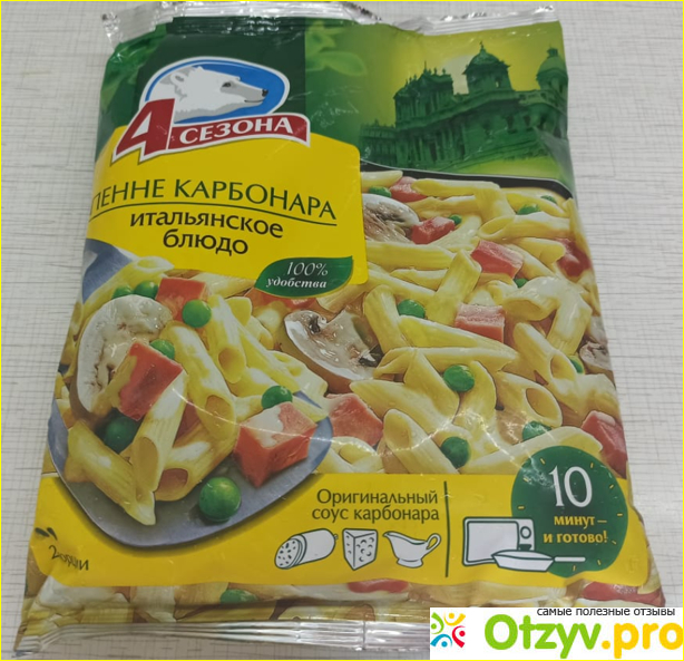 Никогда прежде не было такого, чтобы я лично покупала готовое замороженное блюдо, всегда все готовлю самостоятельно. В крайнем случае, когда уж совсем нет времени, иду кушать в кафе или заказываю доставку, но к готовой продукции отношусь крайне скептически. Недавно мне подруга настоятельно посоветовала попробовать замороженную карбонару от фирмы «4 сезона».