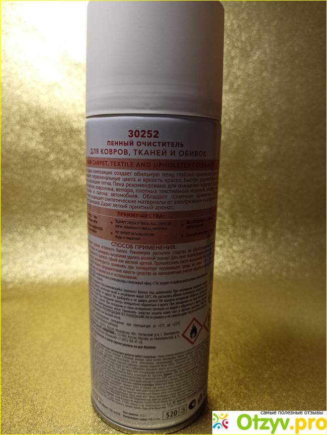 В первый раз я купила концентрированный шампунь для очистки поверхностей, но для моей проблемы он оказался слабоват и я заказала пенный.